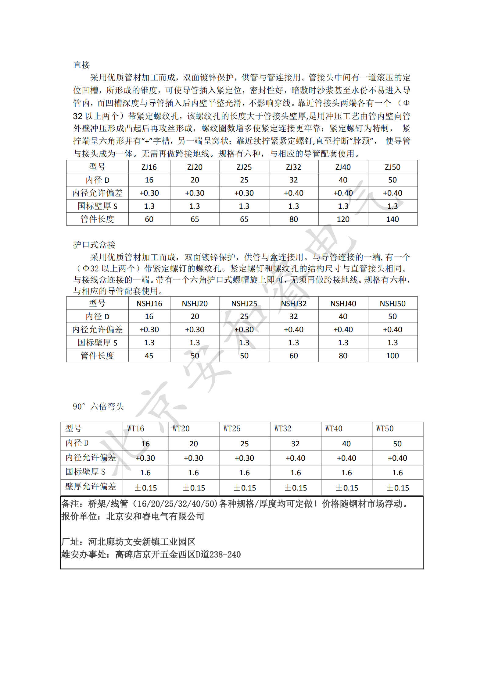 北京安和睿電氣有限公司是一家專業(yè)制造銷售電纜橋架、金屬穿線管、C型鋼-抗震支架及配件的生產(chǎn)廠家。橋架品類有:槽式電纜橋架、梯式電纜橋架、托盤式電纜橋架、大跨距電纜橋架、網(wǎng)格橋架、不銹鋼橋架、鋁合金橋架,橋架表面處理有:鍍鋅、防火、噴塑、熱浸鋅等。金屬穿線管品類有:套接緊定式鍍鋅導(dǎo)管(JDG)與扣壓式(KBG)熱鍍鋅金屬穿線管及相關(guān)配件??拐鹬Ъ茴惍a(chǎn)品有:抗震支架、管廊支架、綜合支吊架等建筑支架。歡迎新老客戶們來(lái)廠考察指導(dǎo)!